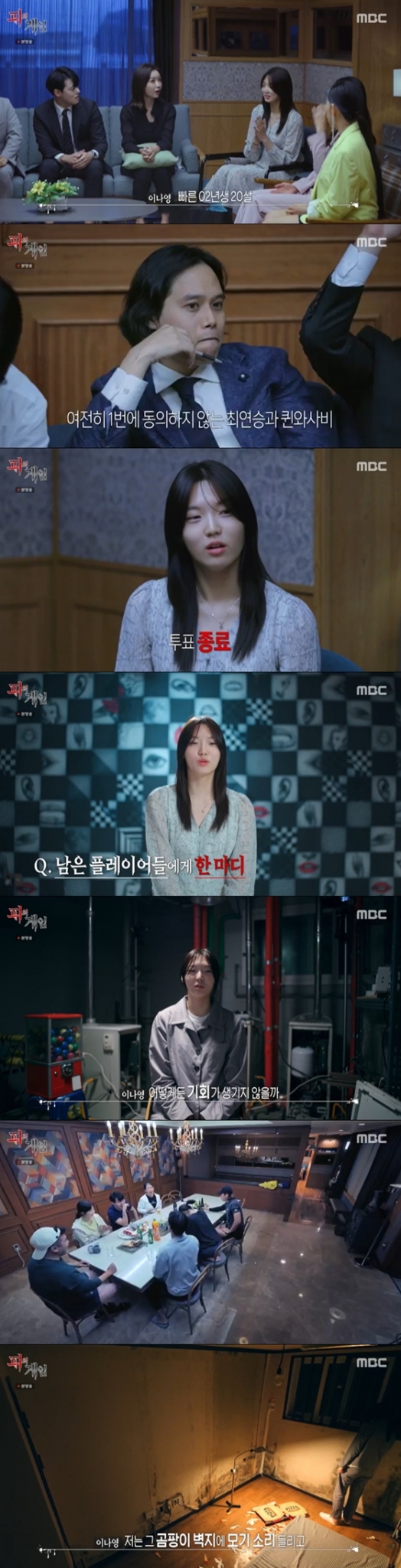플레이어들의 탈락자 투표에서 이나영이 뽑혔다. 투표에 앞서 플레이어들 중 최연승, 퀸와사비를 제외하고 8명의 뜻이 모아지기도 했다. 각자 한 표씩 얻어 탈락자를 만들지 말자는 것. 그러나 최연승, 퀸와사비는 마음 가는 대로 투표하자고 했다. 투표가 시작된 후, 허준영이 투표를 한 후 나와서 "게임 할때, 뭘 할지 모르겠는 사람에게 투표했다"면서 "게임에서 어떤 활동을 할 수 있냐, 없냐에 여부를 뒀다"고 말했다. 투표 결과, 이나영이 탈락하게 됐다.