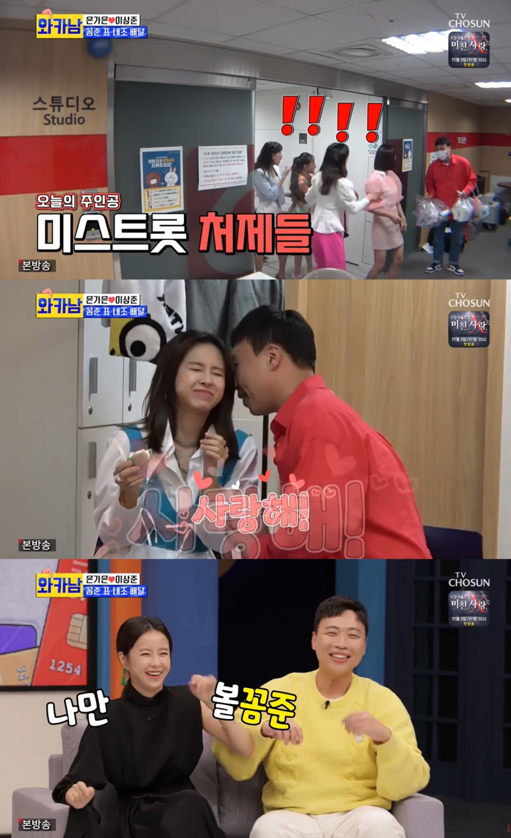 이상준은 '미스트롯2' 출연했던 멤버들 앞에서 은가은에게 "사랑해"라고 크게 소리쳤다. 은가은은 "나도"라고 답해 핑크빛 분위기를 자아냈다.