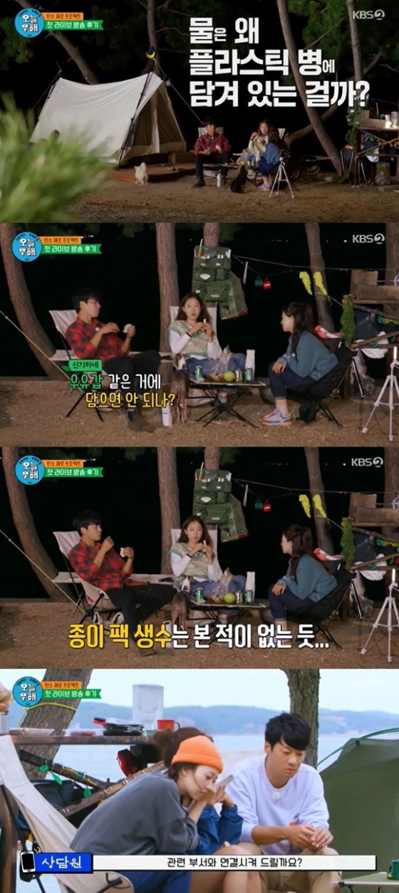 4일 오후 방송된 KBS 2TV 예능프로그램 '오늘부터 무해하게'에서 공효진은 "우유는 팩에 담겨 나오는데 물은 왜 플라스틱에 담겨 나오나"라며 생수 회사에 직접 전화를 걸어 문의를 해보자고 제안했다.
