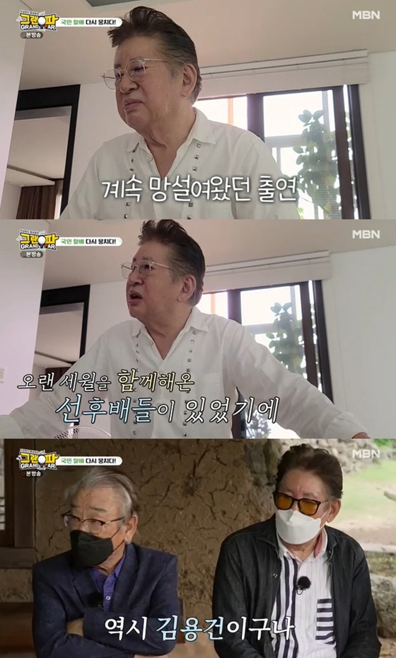 출연 섭외를 받고 느꼈던 많은 고민을 했던 김용건이 용기를 낼 수 있었던 건 주변 사람들 덕분이었다. 김용건은 제작진과의 인터뷰에서 "방송을 할까 말까 고민했다. 주위에 물어봤는데 하는 게 낫다고 하더라. 용기를 내고 나왔다. 오랜 세월 함께 해온 선후배들이다. 얼마나 고맙나"라고 말했다.