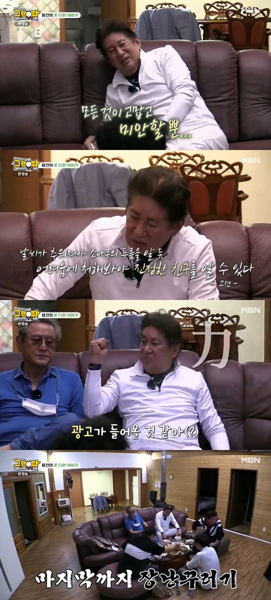 김용건은 "심려 끼쳐서 죄송하다"며 쑥스러운 인사와 함께 '그랜파' 멤버들 앞에 모습을 비쳤다. 그의 등장에 이순재, 박근형, 백일섭, 임하룡은 "별말씀을"이라며 반갑게 그를 맞았다.