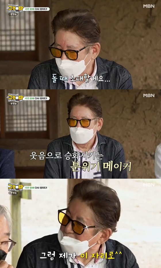 이어진 식사 시간에도 김용건은 '그랜파' 멤버들에게 고마움을 전했다. 특히 백일섭에게 고마움을 드러내며 "전화를 세 번이나 했다. 소주 한 잔 하면서 괜찮ㅎ다고 했다. 힘내라고, 멋지다고 해줘서 고마웠다"라고 말했다. 이에 이순재는 "어려움을 청했을 때 도와주는 사람들이 있다는 건 평소 인덕이다"라고 김용건을 다독였다.