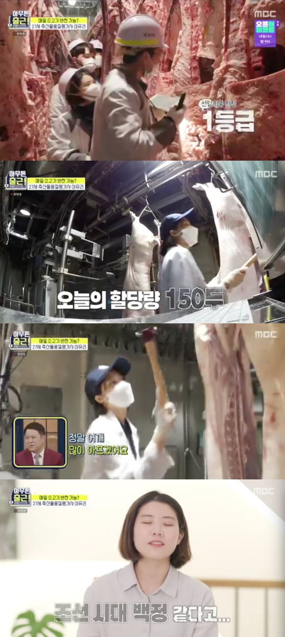 9일 오후 방송된 MBC 예능 프로그램 '아무튼 출근!'에서 이유리가 소, 돼지, 계란 등 축산물 품질을 평가하는 일상을 공개했다.