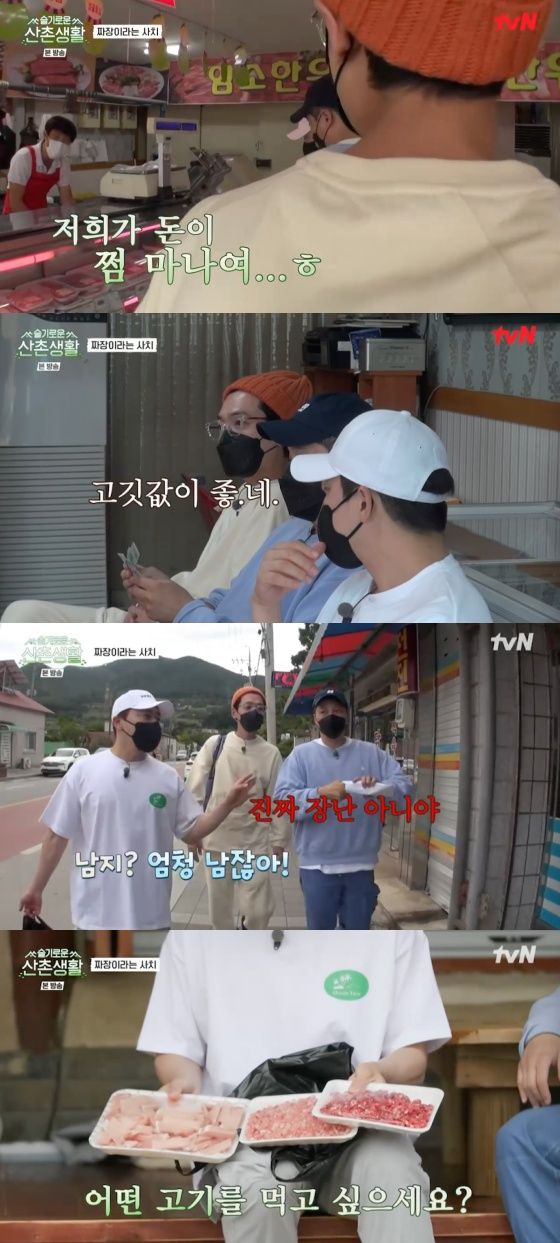 배우 정경호와 조정석, 김대명이 '슬기로운 산촌생활'에서 읍내 쇼핑을 하며 여유를 부렸다.