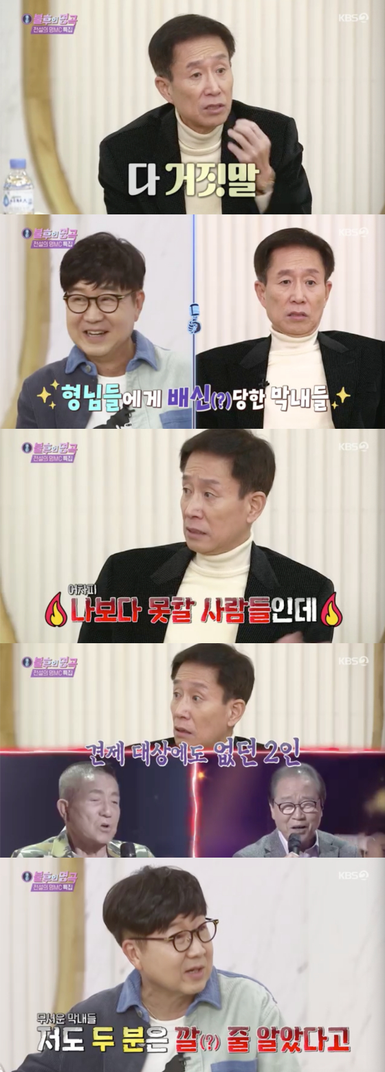 '불후' 방송인 이택림이 이상용과 이상벽의 무대에 배신감을 드러냈다.
