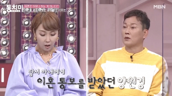 양원경은 지난 13일 방송된 MBN '동치미'에 출연해 자신의 이혼과 관련한 이야기를 하는 모습을 보였다.