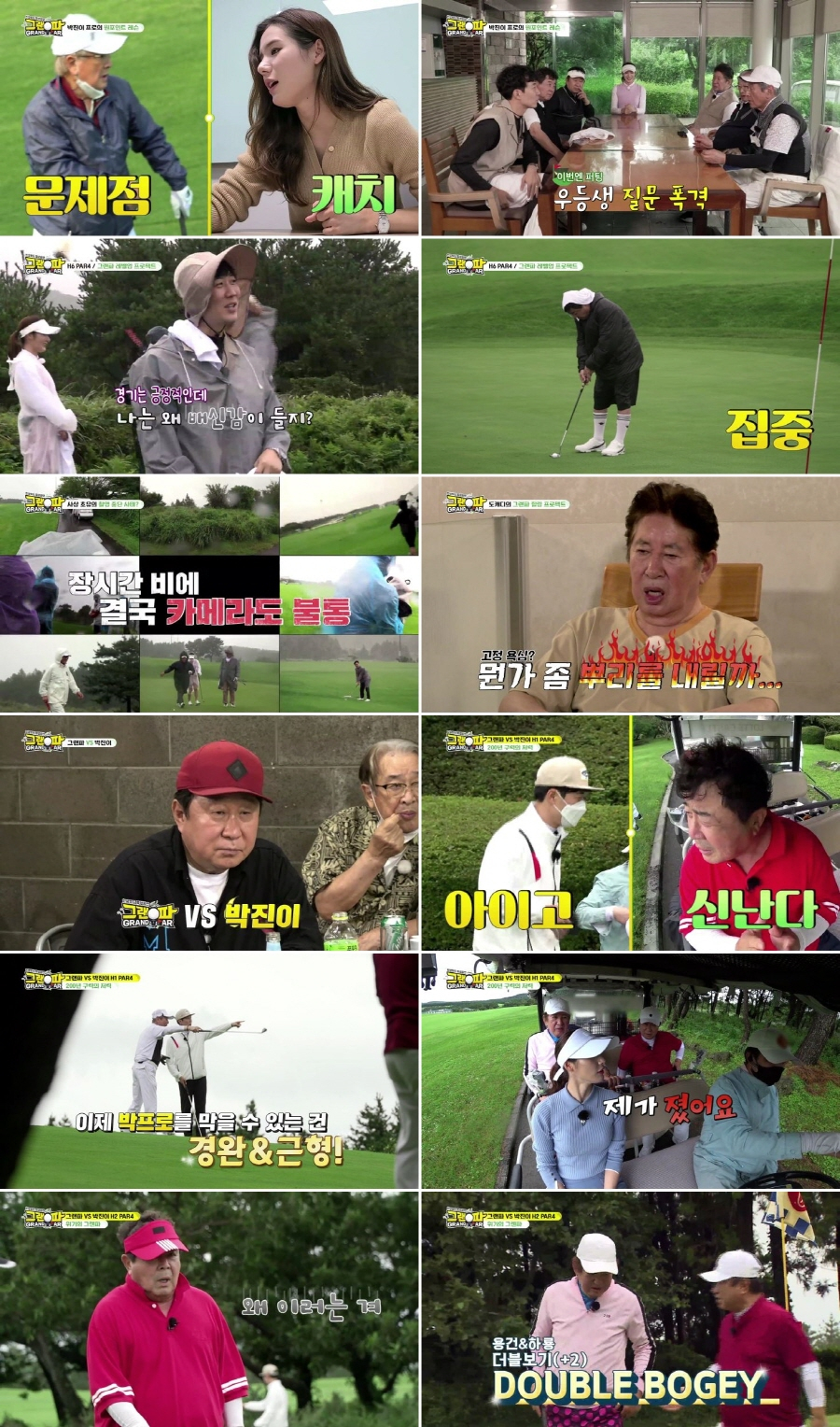 라운딩을 재개한 '그랜파' 멤버들은 비바람 속에서도 박진이 프로의 코칭 덕분에 몰라보게 달라진 모습을 보여줬다. 순식간에 일취월장한 모습에 '도캐디' 도경완은 "아주 긍정적인데 나는 왜 배신감이 들지?"라고 혼잣말을 해 폭소를 유발했다. 점심 식사도 거르고 우중 골프에 몰입하던 것도 잠시, 계속된 악천후로 인해 촬영 장비가 파손됐고, 결국 촬영 중단과 함께 라운딩이 종료됐다.