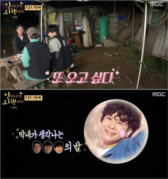 15일 오후 방송된 MBC 예능프로그램 '안싸우면 다행이야'에서 영탁, 장민호, 이찬원의 섬 라이프가 공개됐다.