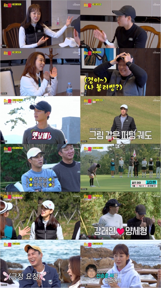 마지막 홀은 남자 여자 '듀엣 커플 전'으로 진행됐고, 문희경-허재의 동갑 케미와 양세형을 향해 절절 애정을 고백한 강래연의 핑크빛 무드가 빛을 발했다. 허재는 티샷이 해저드에 빠지자 양세형에게 애걸복걸했지만 양세형은 예고한 대로 티샷을 정확하게 보내며 감탄을 쏟게 했다. 허재와 문희경이 우왕좌왕한 데 반해 양세형과 강래연은 파를 만들었고, '최강세'팀이 무패로 최종승리를 거머쥐었다. 그런가 하면 약속대로 경기에서 진 '이겼다'팀의 허재가 저녁을 대접했고, 명세빈-공현주-문희경-강래연의 데뷔 비하인드 스토리와 문희경의 멋들어진 샹송 '낙엽'을 들으며 파도 소리 속 즐거웠던 하루가 아름답게 마무리됐다.