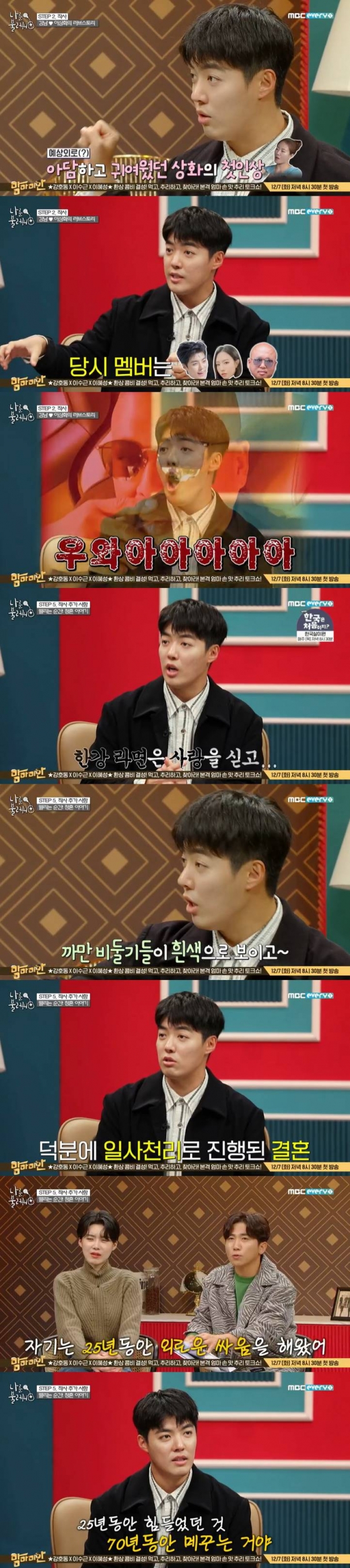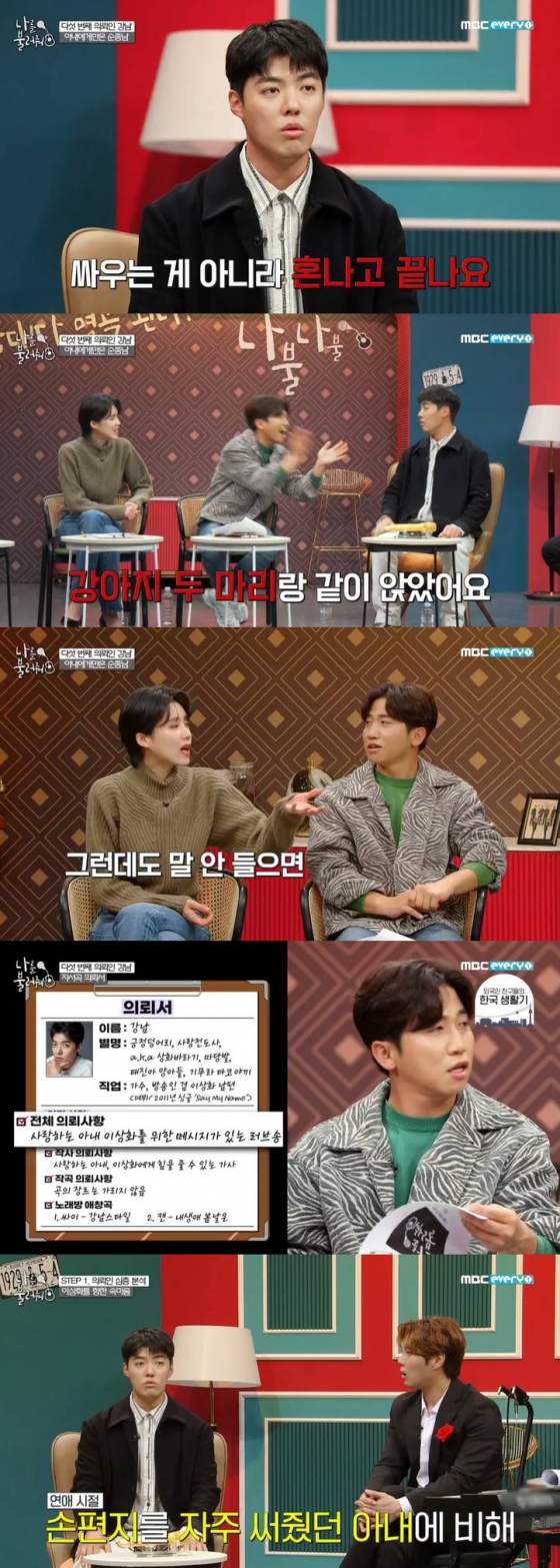 16일 방송된 MBC에브리원 예능프로그램 '나를 불러줘'에서는 강남이 다섯 번째 의뢰인으로 출연했다. 강남은 2019년 10월 이상화와 결혼해 최근의 신혼생활에 대해 털어놨다.