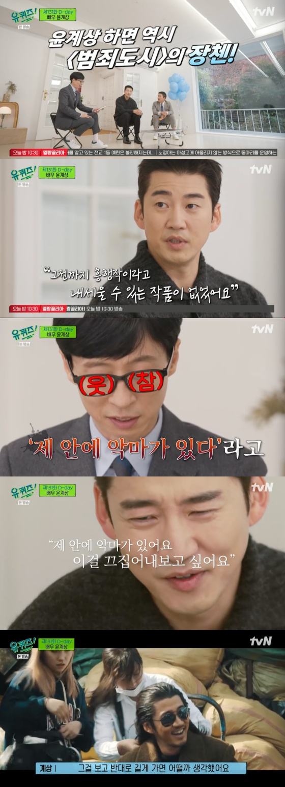 배우 윤계상이 '유 퀴즈 온 더 블럭'에서 영화 '범죄도시' 때 연기를 위해 했던 노력을 말했다.