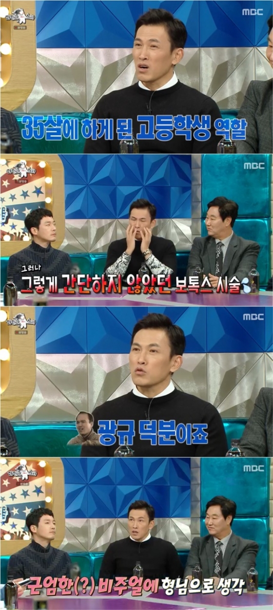 17일 오후 방송된 MBC 예능프로그램 '라디오스타'에서는 '잡거나 잡히거나' 특집으로 배우 유오성, 김복준, 장혁과 개그맨 윤형빈, 교육인 김복준이 출연했다.