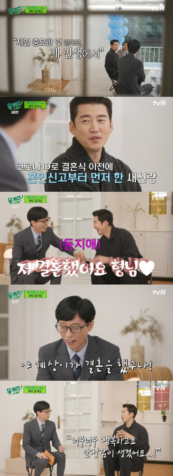 또 윤계상은 지난 8월 결혼했다고 밝혔다. 윤계상은 혼인신고를 했다고 말하며 "코로나19 때문에 결혼식은 어떻게 해야 할지 고민 중이다"라고 말했다.