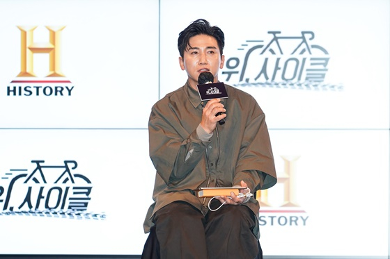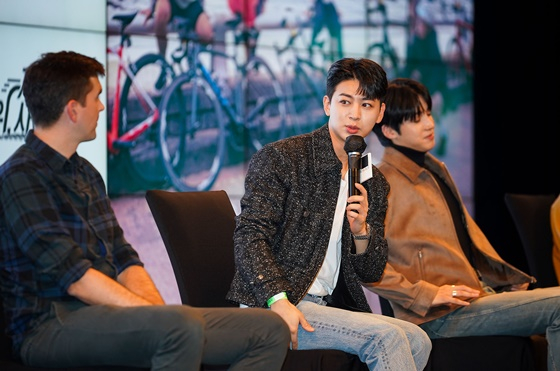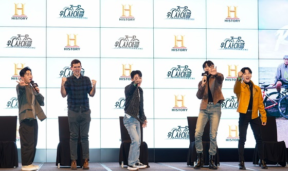 19일 오후 서울 동대문구 JW 메리어트 동대문에서 히스토리 새 예능프로그램 '위, 사이클' 제작발표회가 열렸다. 이날 행사에는 유세윤, 제임스 후퍼, 아이콘 송윤형, 펜타곤 우석, AB6IX 전웅이 참석했다.