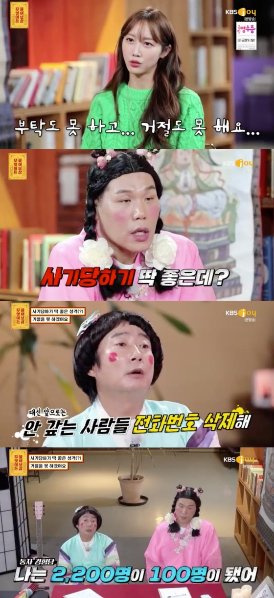 22일 오후 방송된 KBS JOY 예능프로그램 '무엇이든 물어보살'에 이코코가 거절 못하는 성격으로 고민을 상담했다.