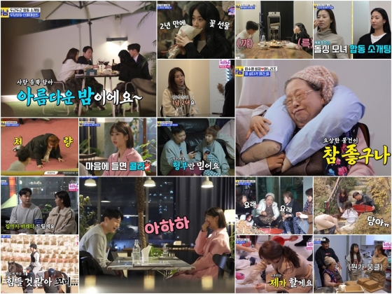 더욱이 배수진과 소개팅남은 서로에게 칭찬 릴레이를 펼치며 핑크빛 분위기를 자아낸 데 이어, 배수진은 자신의 상황에 대해 "그런 선택과 판단, 용기 있고 멋있는 거 같다"는 소개팅남의 진심 어린 응원에 감동의 웃음을 드리웠다. 반면 중저음이 매력적인 소개팅남을 만난 안현주는 상대방의 투머치 토크에 점차 지쳐가는 기색으로 웃음을 유발했던 터. 이때 배수진이 "사실은 저희 엄마가 소개팅하고 있다"고 폭탄 발언을 던졌고, 결국 즉석에서 모녀와 두 소개팅남이 어색한 인사를 나눴다. 이후 네 사람은 자리를 옮겨 와인 축배와 서로에 대한 진심 어린 조언을 건네며 훈훈한 기류 속에서 소개팅을 마무리했다.