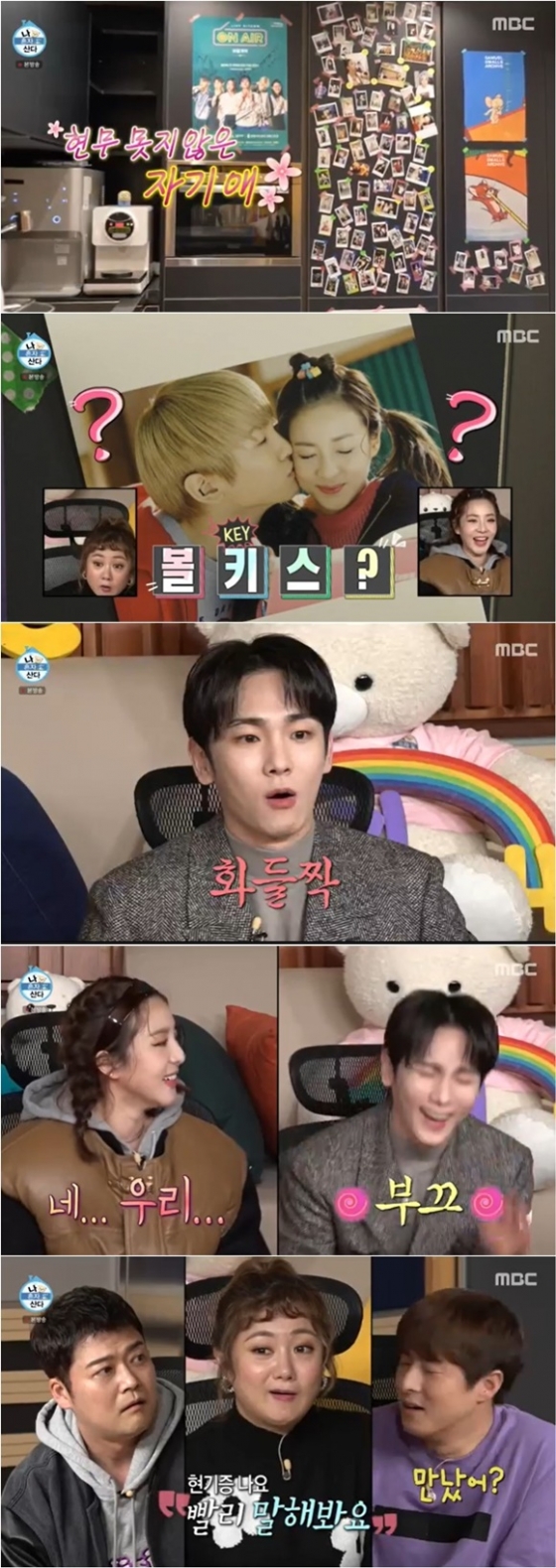 '나 혼자 산다'에서 가수 산다라박의 집에서 샤이니 키가 볼키스하고 있는 사진이 공개돼 멤버들의 시선이 집중됐다.