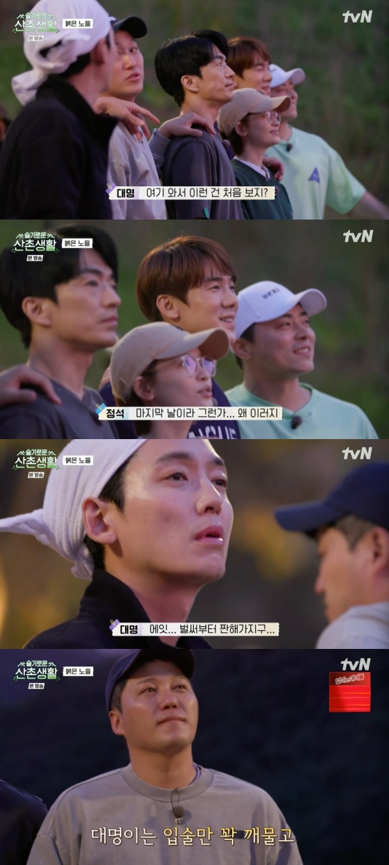 모두가 사진을 확인할 때도 김대명과 정경호는 노을에 눈을 고정했다. 김대명이 "벌써부터 짠해가지고"라며 눈시울을 붉히자 조정석은 "왜 그러냐"라며 장난치며 위로했다. 결국 김대명은 자리를 떴다.