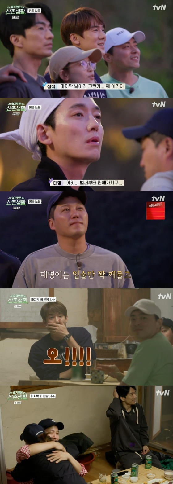 26일 오후 방송된 tvN 예능 프로그램 '슬기로운 산촌생활'에서 멤버들이 산촌에서 '슬기로운 의사생활2' 마지막 회를 봤다.