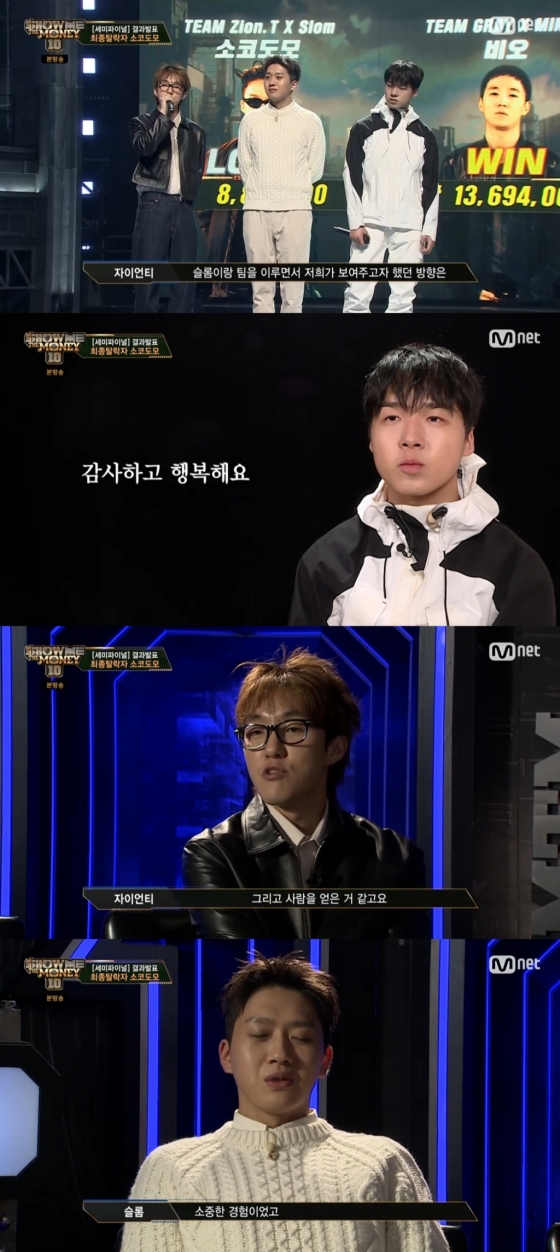 자이언티는 "소코도모 너무 고생했고 이 자리에 없는 팀원들에게 고맙다. 슬롬과 팀을 이루면서 저희가 보여주고자 했던 방향은 이 쇼 안에서 다양성을 만들어보고 싶다는 것이었다. 그 목적을 달성한 것 같아 만족한다"고 탈락 소감을 전했다.