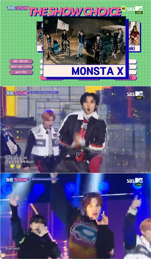 30일 오후 방송된 SBS MTV 음악프로그램 '더쇼'에서는 몬스타엑스가 'Rush Hour'로 1위를 차지했다.