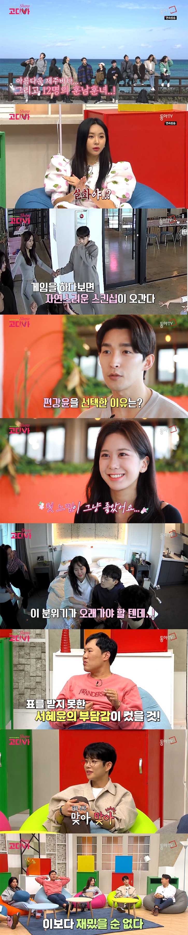 이날 방송에서는 서혜윤, 이하평, 구하연, 이용성, 편강윤, 강운, 황인해, 송현찬, 차세연, 노희국, 차유, 김현준 등 총 12명의 남녀가 '고디바 하우스'에 입성하기 위해 제주도로 향하는 모습으로 시작됐다.