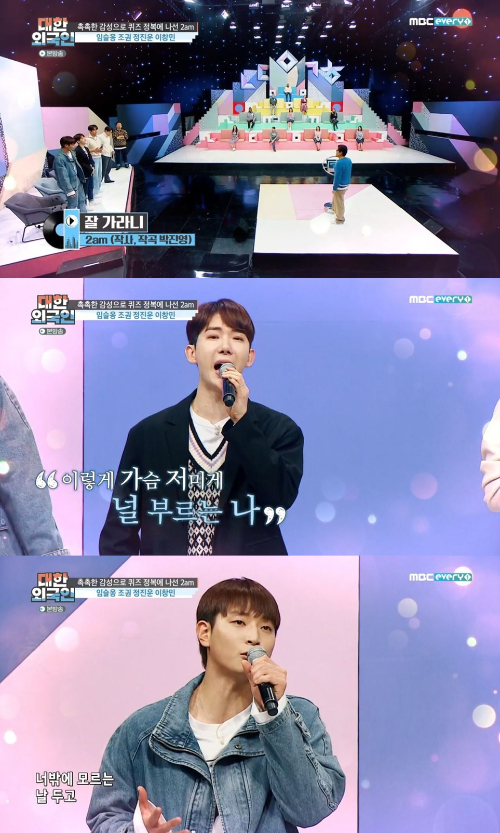8일 오후 방송된 MBC Every 1 '대한 외국인'에서 가수 2AM이 노래 '잘 가라니', '가까이 있어서 몰랐어'라는 두 곡을 부르며 스튜디오를 핑크빛으로 만들었다.