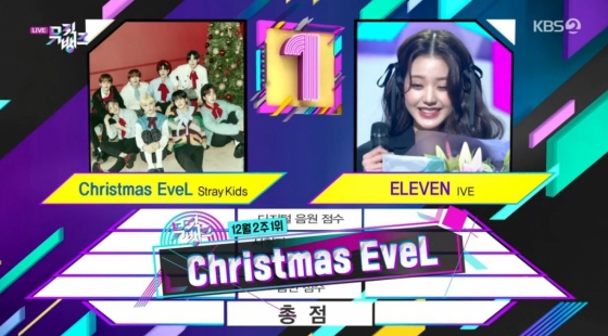 10일 방송된 KBS 2TV '뮤직뱅크'에서 스크레이 키즈의 'Christmas EveL'과 아이브의 'ELEVEN'이 12월 둘째 주 1위 후보에 올랐다.