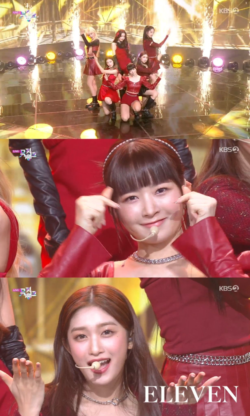 이날 방송에서는 2위를 차지한 아이브는 붉은 컬러 의상에 검정 가죽 부츠를 신고 나와 화려한 퍼포먼스를 선보였다.