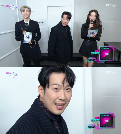 MC 성훈은 "19대 은행장 하하가 오랜만에 뮤직뱅크에 찾아와 줬다"며 하하를 소개했다.