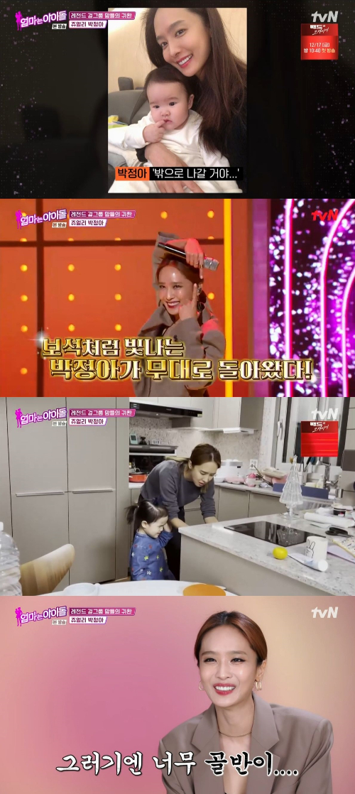 10일 첫 방송 된 tvN 금요일 예능 프로그램 '엄마는 아이돌'에서 전 그룹 쥬얼리의 멤버인 박정아가 첫 참가자로 나왔다.