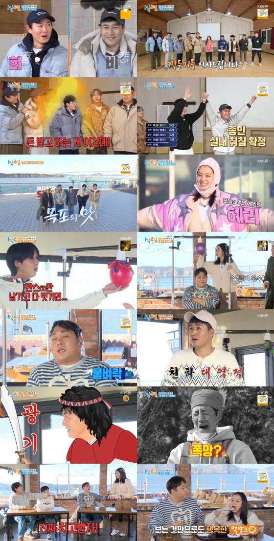 첫 아침 식사에서 혜리는 '쫄복탕' 시식 기회를 얻게 됐다. 그는 조용한 '침묵의 식사'로 멤버들을 안달 나게 하는 것도 잠시, "저 맛 없으면 안 먹어요"라는 한 줄 시식평으로 분위기를 달궜다. 겹겹이 쌓인 물풍선을 터뜨리는 '쫄지마 복불복' 게임에서는 혜리가 가장 먼저 탈락의 고배를 마셨다. 게임 룰을 이해하지 못하는 김종민에 답답함을 표출하던 연정훈은 칼자루를 든 채 춤판을 벌이며 '연나니'로 돌변했다. 그는 1등으로 미션에 성공하자마자 물풍선을 터트려 김종민에게 물벼락 세례를 안겼다.