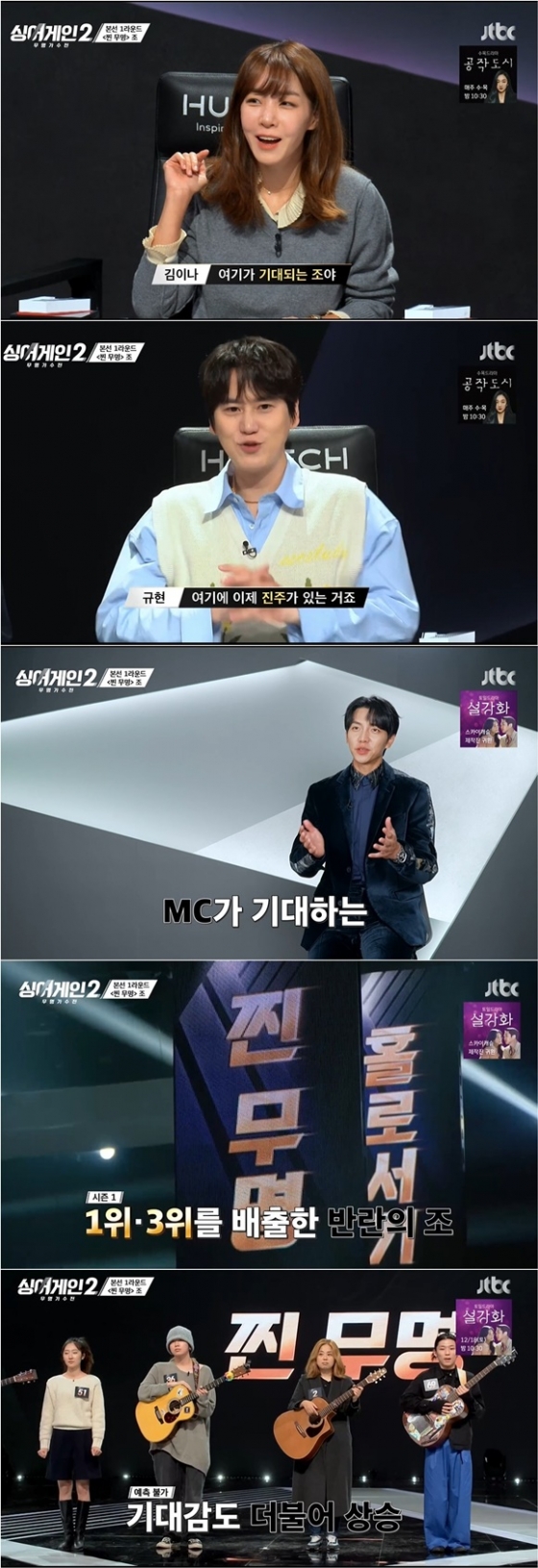 13일 오후 방송된 JTBC 예능프로그램 '싱어게인2'에서는 본선 1라운드 조별 생존 전에서 '찐 무명' 조의 대결이 그려졌다.