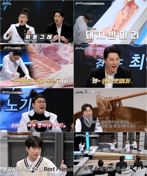 이날 방송에서는 모두의 기립 박수 속에 비주얼부터 시선을 압도하는 식재료가 등장해 입을 떡 벌어지게 했다. 바로 정형되지 않은 돼지 반 마리. 이에 '서울 칼잡이'로 불리는 서울 대표 임성근 명인은 즉석으로 돼지 해체쇼를 펼쳐, 신선한 돼지고기가 어떤 요리로 탄생할지 기대감을 높였다.
