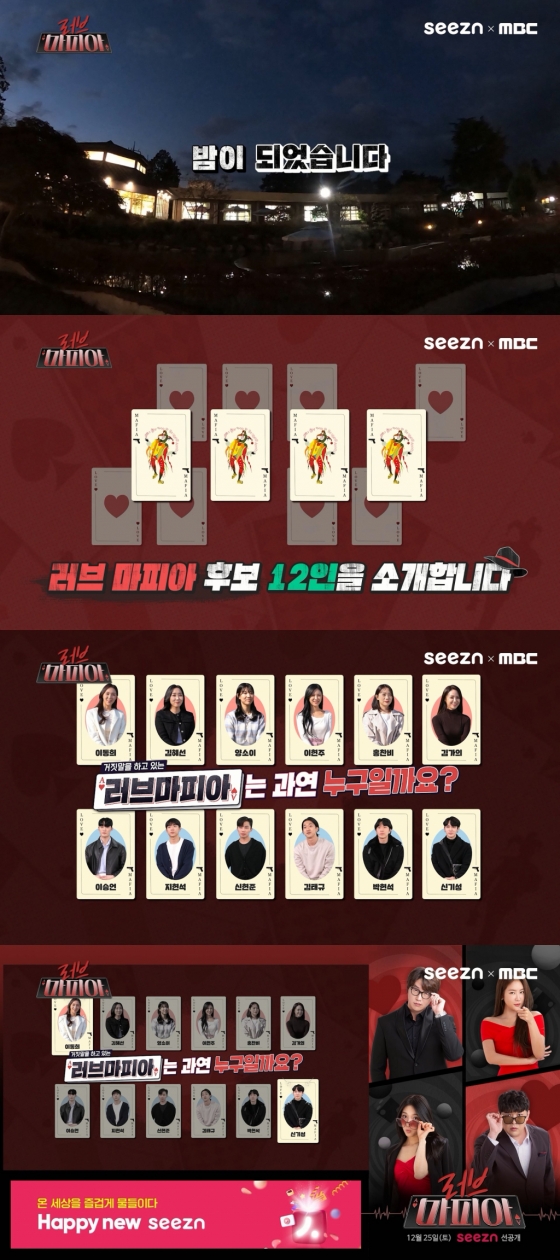 지난 14일 seezn 공식 SNS를 통해 게재된 영상에는 '러브 마피아'에 출연하는 청춘남녀 12인의 이름과 얼굴, 목소리가 공개돼 시선을 끌었다.