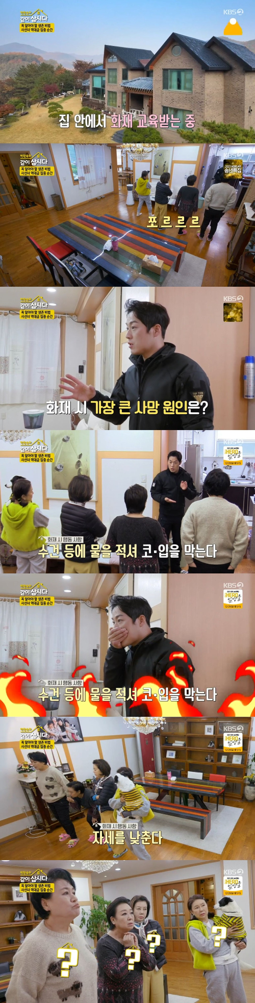 15일 오후 방송된 KBS 2TV 예능프로그램 '박원숙의 같이 삽시다 시즌 3'에서는 사선녀와 강철 부대가 김장 100포기를 마무리한 후 화재 교육하는 모습이 그려졌다.