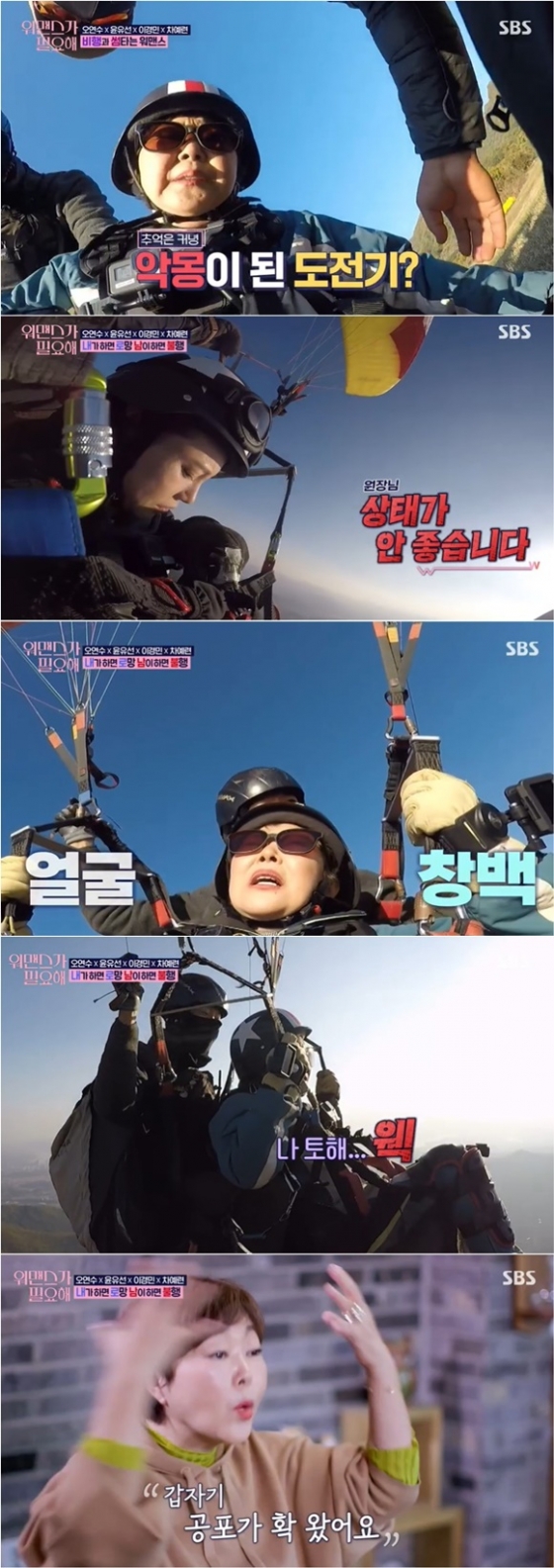 '워맨스가 필요해'에서 메이크업아티스트 이경민이 무리한 패러글라이딩에 공중 구토를 호소했다.