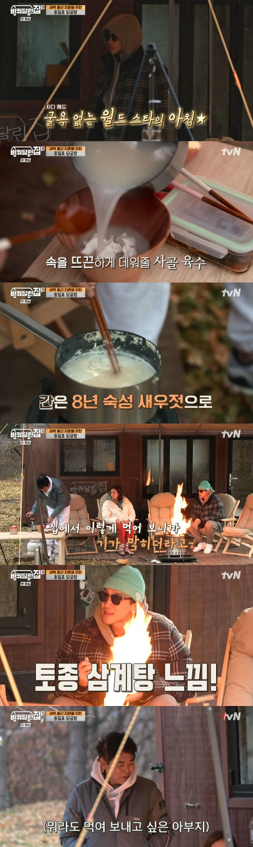 비는 성동일이 해준 닭곰탕을 든든히 먹고 "잘 먹었어요. (유이에게는) 촬영장에서 봐"라고 인사를 했다.