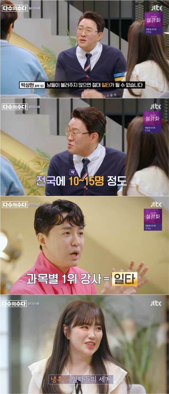 17일 오후 방송된 JTBC 예능프로그램 '다수의 수다'에서는 자타공인 일타 강사 최태성, 박상현, 김민정, 조정식이 출연했다.