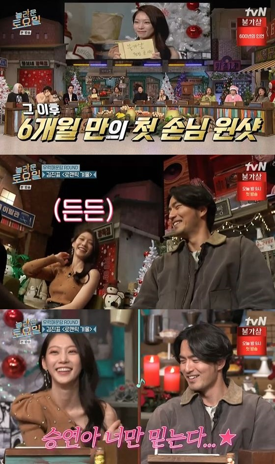 18일 오후 방송된 tvN 예능프로그램 '놀라운 토요일 - 도레미 마켓'(이하 '놀토')에서는 배우 이진욱과 공승연이 게스트로 출연했다.