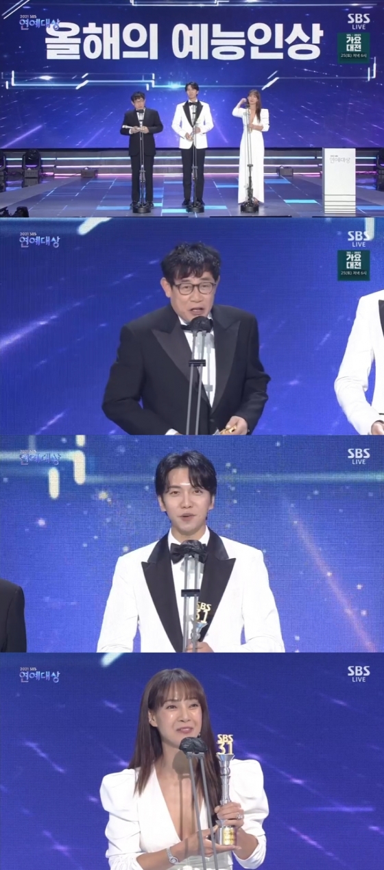 이경규, 이승기, 박선영이 SBS '올해의 예능인상'을 수상했다.