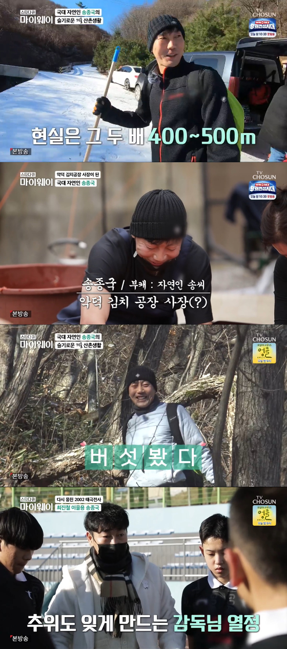지난 19일 오후 7시 40분 방송한 TV CHOSUN '스타다큐 마이웨이'에서 송종국은 강원도 홍천에서의 겨울 나기 노하우를 선보였다. 송종국은 편 상황버섯 찾기부터 김장까지 다양한 분야에서 생활력을 보여줬다.