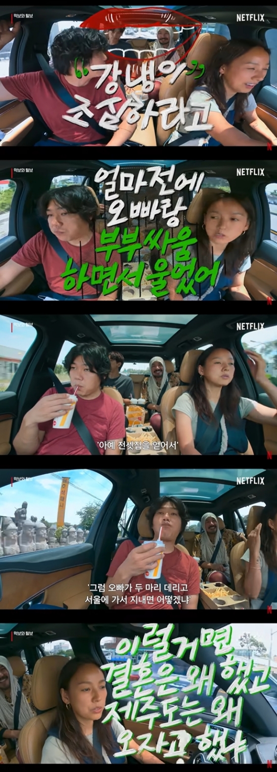 지난 17일 유튜브를 통해 공개된 넷플릭스 '먹보와 털보' 영상에서 이효리는 이상순에게 "오늘 되게 위험한 날이다"며 "나한테 한대 맞을수 있다"고 경고했다. 이에 이상순은 "어제 한 10시쯤에 (이효리에게) 문자를 받았다. 강냉이 조심하라고"라고 폭로했다.