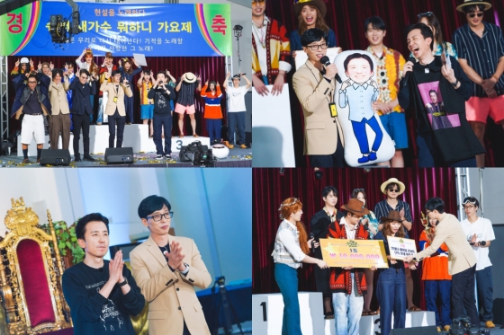 20일 카카오TV 오리지널 '더듬이TV : 우당탕탕 안테나'(연출 김동일)에서는 안테나 식구들이 유재석의 명곡을 커버했던 '슈퍼새가수 뭐하니 가요제'의 최종 우승팀이 공개됐다. 원곡 가수 유재석과 심사위원 윤상, 이상순, 정재형의 심사 결과, 대망의 최종 우승팀은 '사랑의 재개발'을 블루스로 재해석해 귀호강 무대를 선보인 적재-이진아-샘김 팀으로 결정됐다. 유재석은 우승팀에 우승 트로피와 상품을 직접 전달하며 마지막까지 훈훈한 분위기를 자아냈다.