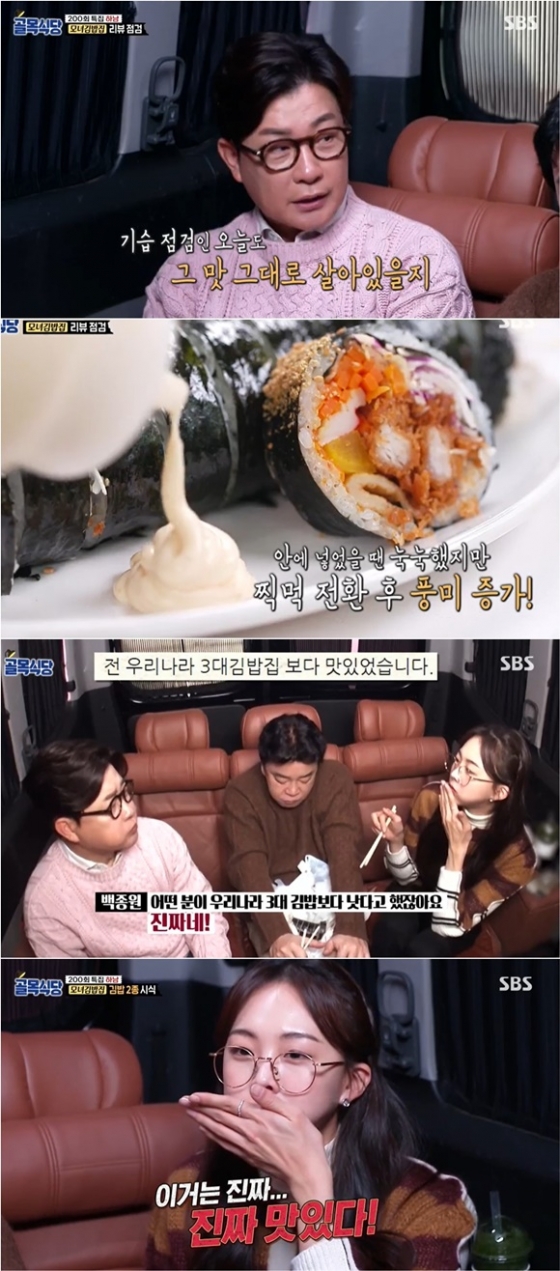 김밥 맛을 본 백종원은 "후기 중에 '3대 김밥집 보다 더 맛있다'는 글이 있었는데 진짜네. 맛의 완성도가 예술이다"라며 극찬했다.