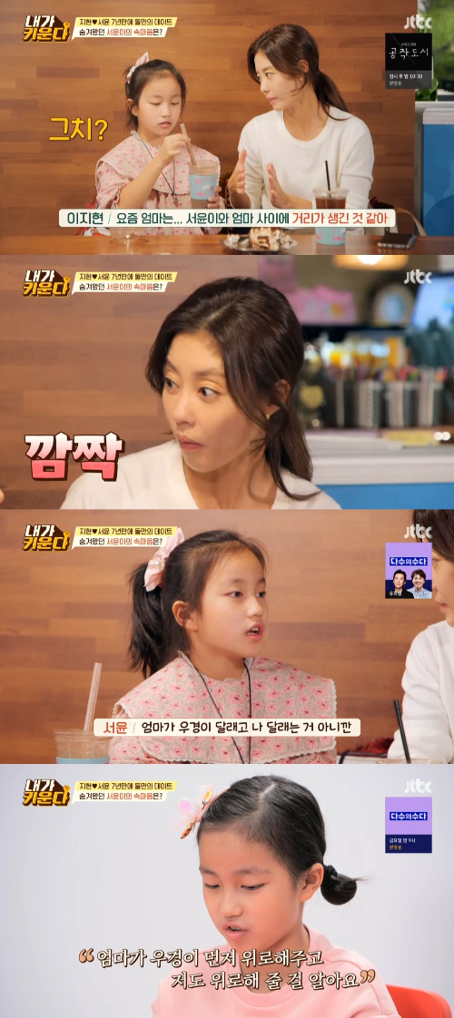 22일 방송된 JTBC 예능프로그램 '용감한 솔로 육아 - 내가 키운다'(이하 '내가 키운다')에는 이지현이 딸 서윤이와 오붓하게 카페에서 대화하는 모습이 담겼다.