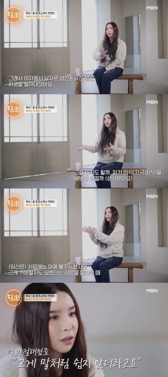 지난 23일 방송된 MBN 시사교양 프로그램 '현장르포 특종세상'에서는 하리수가 출연했다.