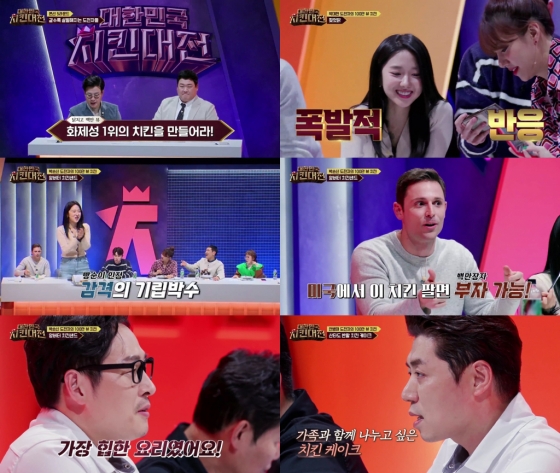 특히, '치킨대전' 초반부터 우승 후보로 점쳐졌던 도전자에게는 심사위원들의 극찬이 쏟아졌다. 이혜성은 기립박수를 치며 도전자의 치킨에 감탄했고, 조나단은 "미국에서 이 레시피로 레스토랑 열면 부자 될 것 같다", 김풍은 "제 기준에서는 가장 힙한 요리였다"고 전해 궁금증을 더한다.