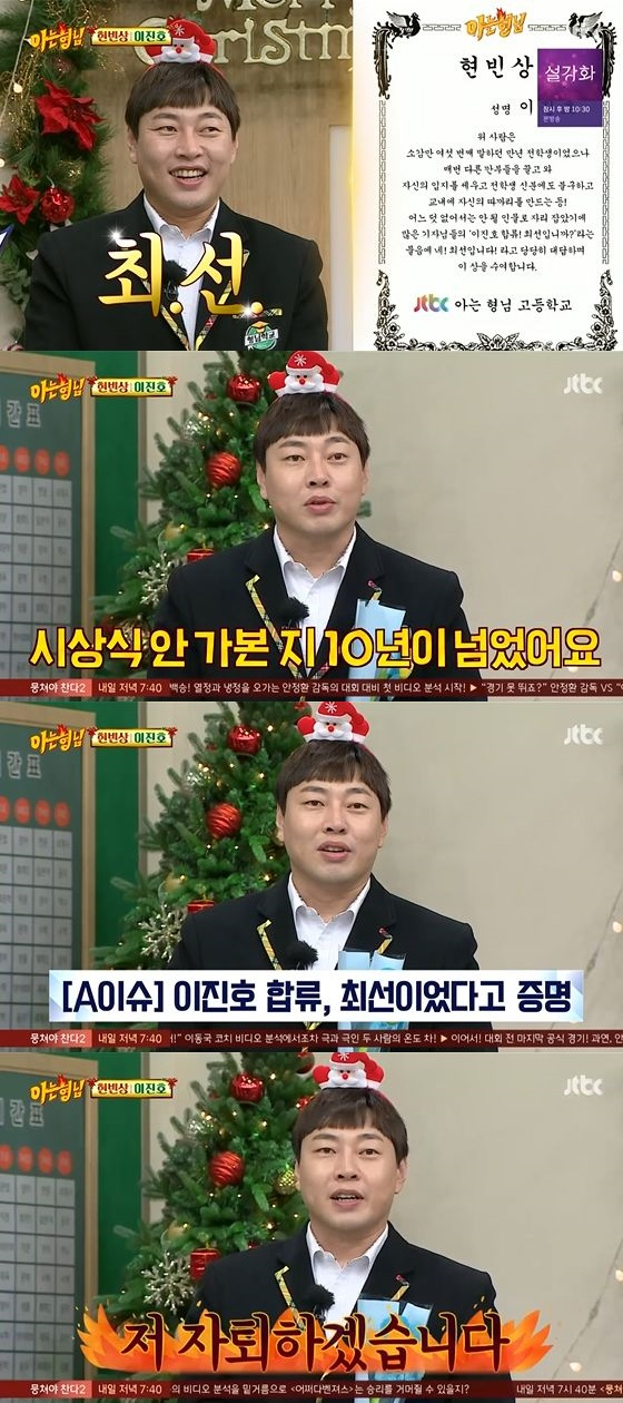 '아는 형님' 종업식에서 이진호가 수상소감을 밝혔다.