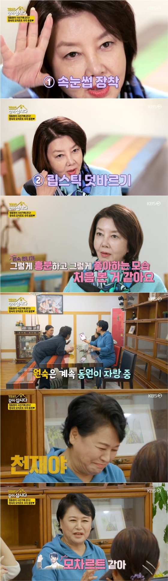 '박원숙의 같이 삽시다 시즌3'에서 박원숙이 가수 정동원의 방문에 속눈썹을 붙이고 립스틱을 덧바르는 등 흥분을 감추지 못했다.